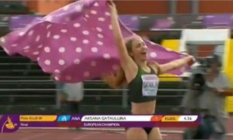 Соревнования проходили в Швеции, рассказывает eurosport.ru. Спортсменке удалось совершить прыжок на 4,36 м.Таким образом она на 20 см обошла соперницу. После этого девушка взяла розовый плед в горошек и сделала с ним круг почета.