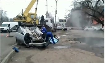 Трагедия произошла на улице Аустрина. На видео автомобиль “Лада-Ларгус” и уже погибших людей краном достают из ямы. Возбуждено уголовное дело по ч. 3 ст. 109 Уголовного кодекса (причинение смерти по неосторожности двум лицам).