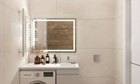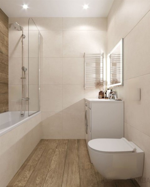 Ну и конечно просторный санузел с дизайнерской плиткой и мебелью в ванной .